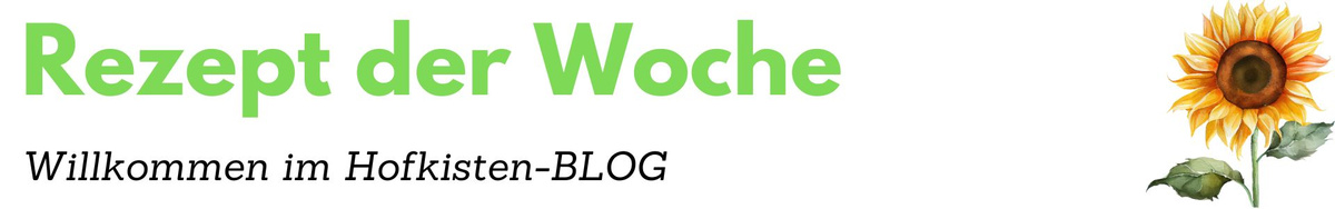 KI generiert: Ein Hund liegt vor einem Tisch mit Gemüse; Text: "BLOG DIE HOFKISTE".