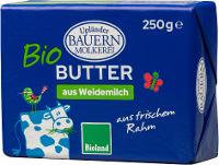 Die Upländer Bio-Süßrahmbutter aus Weidemilch hat einen cremigen & sahnigen Geschmack und ist besonders streichzart.  Sie eignet sich auch hervorragend zum Kochen. Tierwohl, Arten- und Klimaschutz stehen bei der Upländer Bauernmolkerei an höchster Stelle. Die Kühe gehen wann immer möglich auf die Weide, mindestens aber an 120 Tagen im Jahr für 6 Stunden - oft sogar mehr. Pro Kuh beträgt die Weidefläche garantiert 1000m2. Weidehaltung steht nicht nur für Tierwohl, sondern trägt auch zur Biodiversität bei, denn das vielfältige Grünland bietet eine große Bandbreite an Lebensräumen für Insekten, Vögel und viele weitere Tier- und Pflanzenarten.