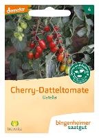 Die Tomate Datella ist eine rot reifende Cherry-Datteltomate mit festen, gleichmäßig durchgefärbten Früchten. Die Pflanzen wachsen offen und hoch, sind leicht zu pflegen und eignen sich